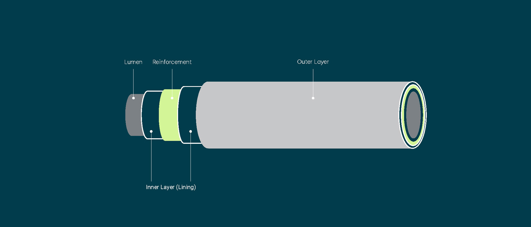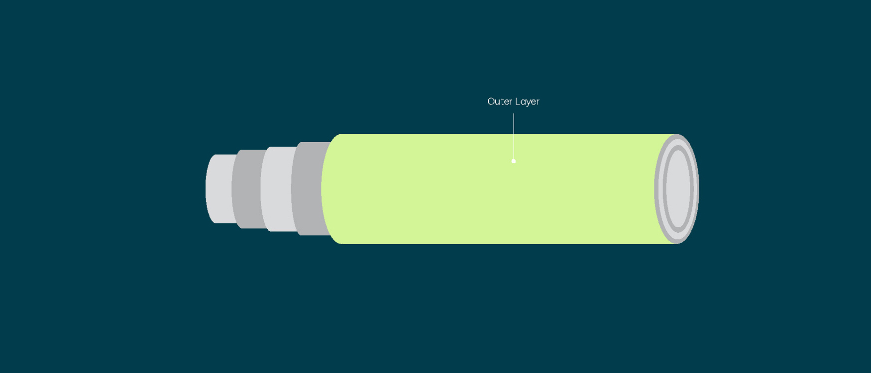 A hose is made up of several components that fulfil specific functionalities. This carefully selected composition ensures that the hose retains its characteristic properties, such as durability, flexibility, strength and UV resistance.